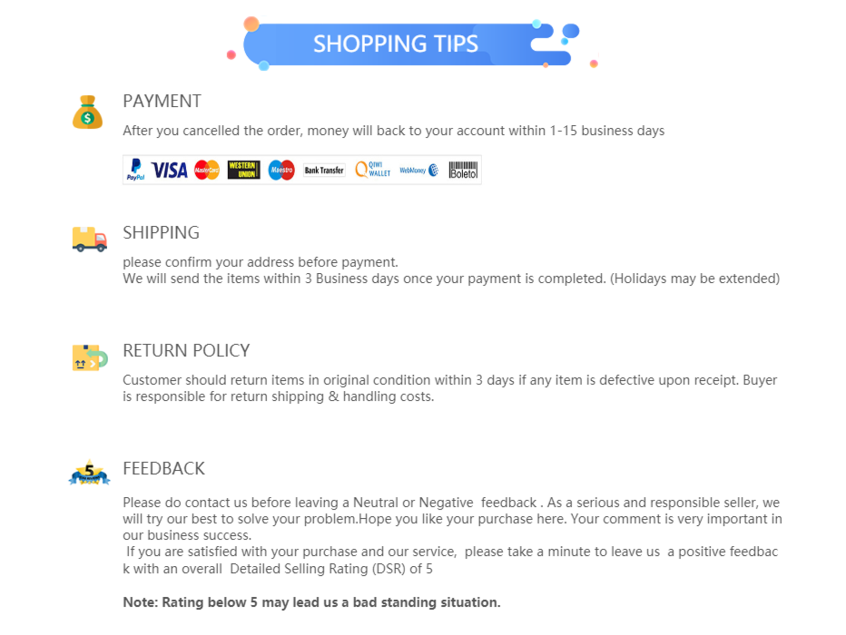 - No hassle returns, 30 days return