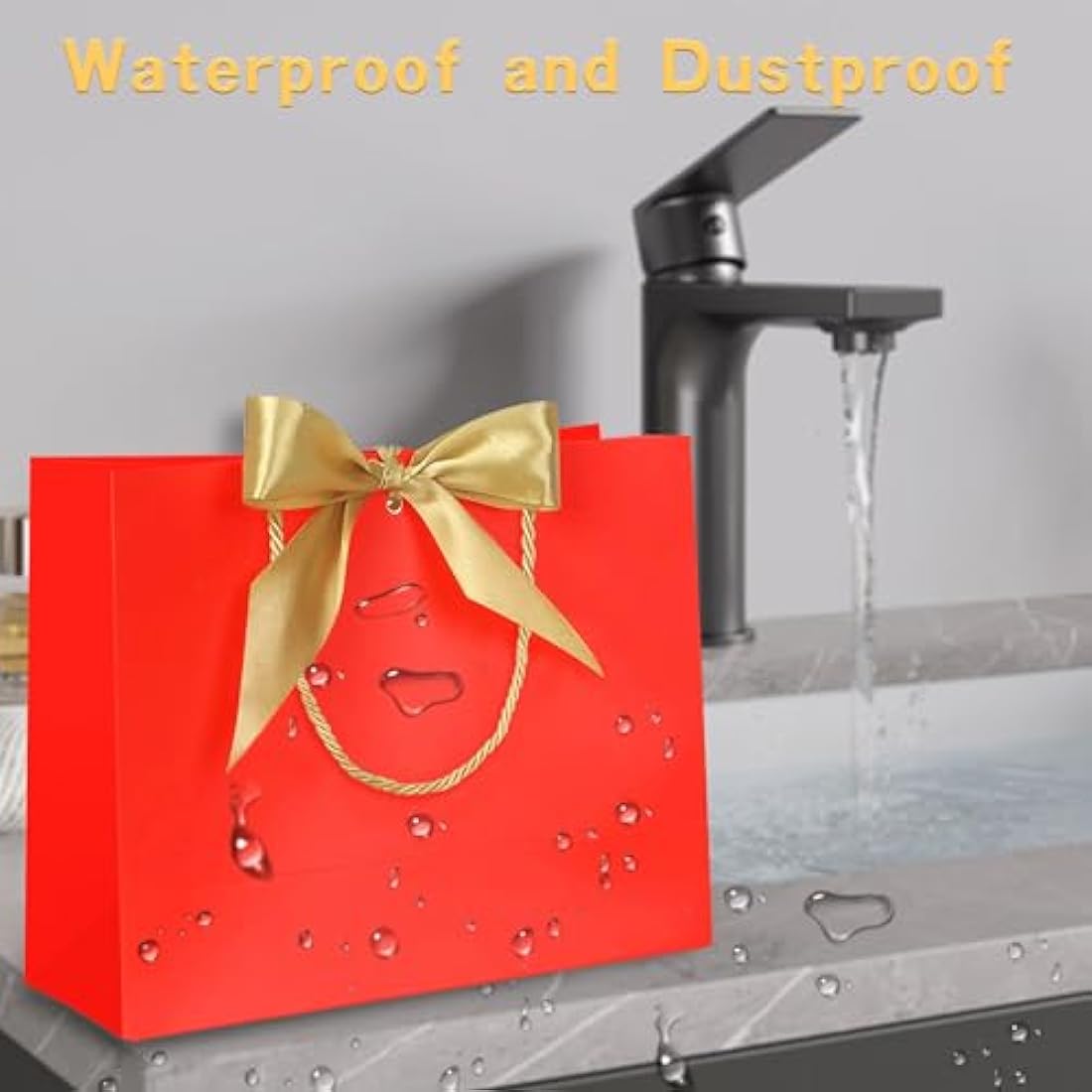 10pcs Gift Bag With Gold Ribbin Luxury Paper Party bag With Handles For Wedding Birthday Baby Shower Halloween Christams((32 * 25 * 10cm) (Red)