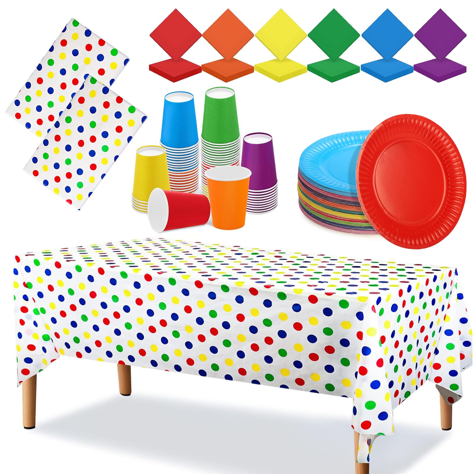 180 Pack Pieces Rainbow Party Tableware -Tablecloth, Colorful Paper Plates and Napkins 250ml Paper Cups Complete Pack Dinnerware Set for Neon Rainbow