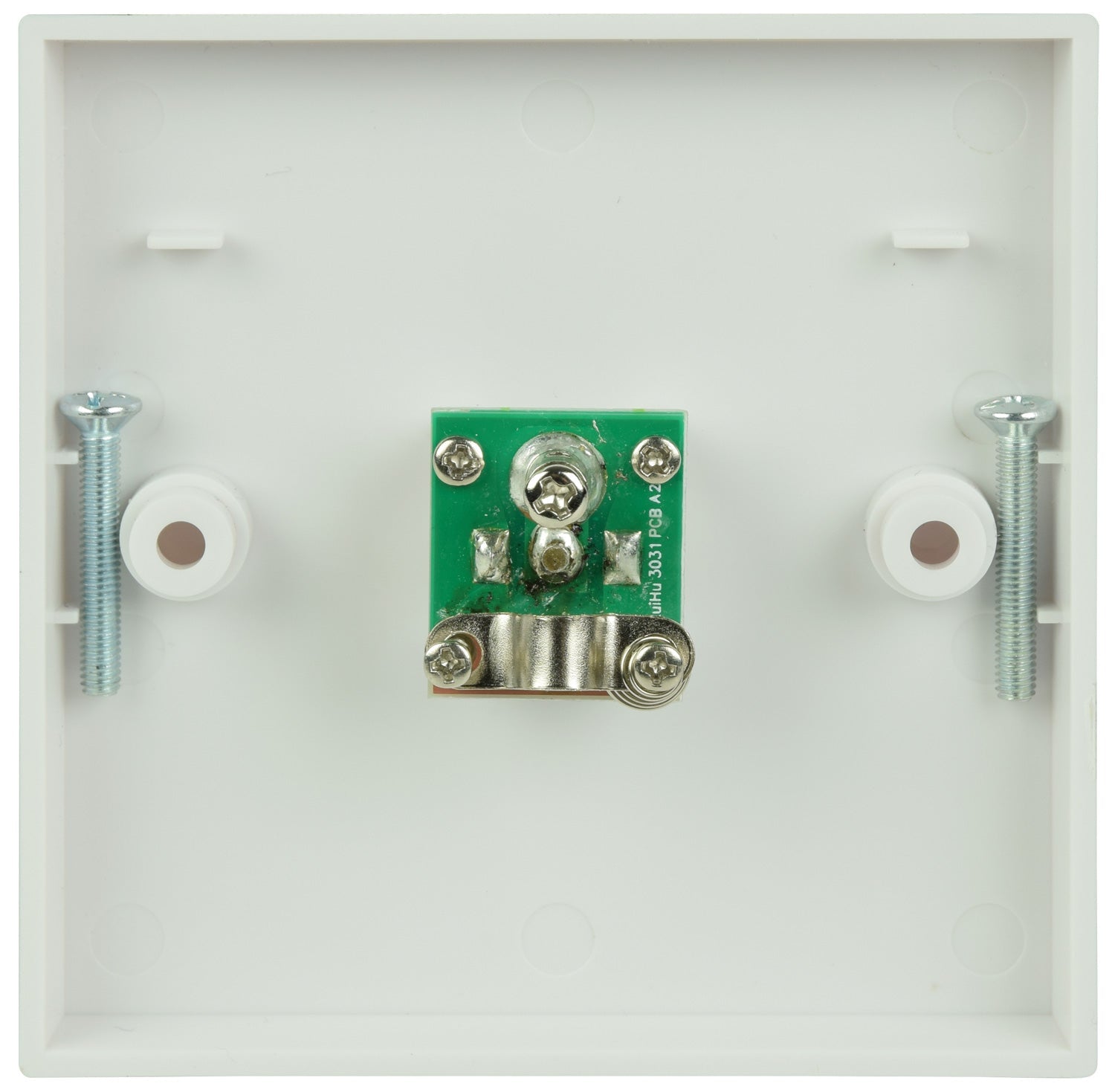 A white plastic flush mount wall plate with a single coaxial socket for TV aerial connection. Fits a standard single... Read more