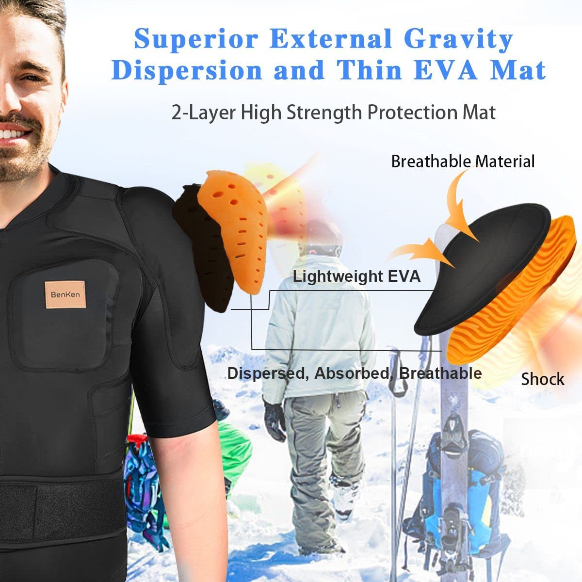 BenKen Ultra Light Protective Gear Skiing Body Armor Spine Back Protector Outdoor Sports Anti-Collision Clothing for Snowboard Skating Skiing Riding
