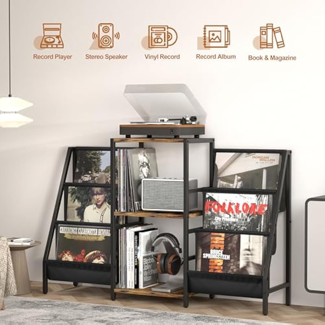 【Top-quality Vinyl Record Player Stand】High-end durable powder-coated metal frame to resist rust, high-quality thickened easy cleaning wooden board and high-grade... Read more