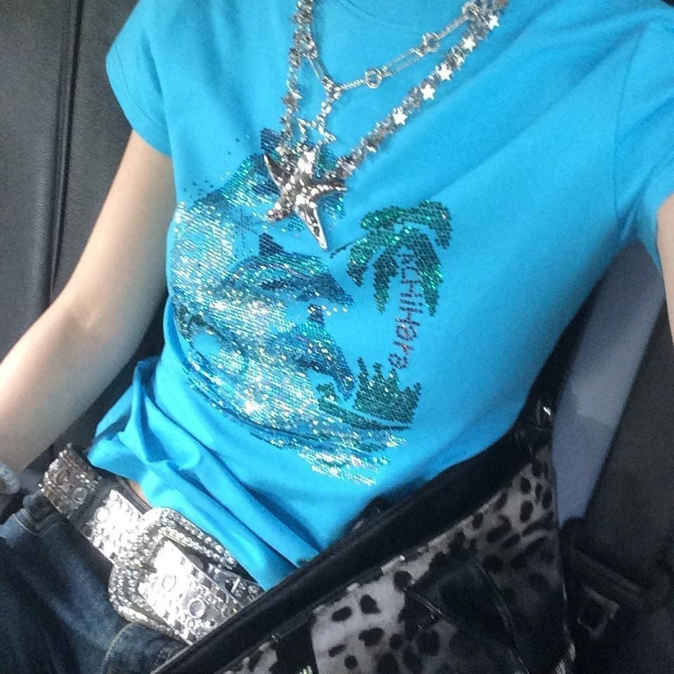 Blue Slim-fit Short-sleeve T-shirt Women's Summer Base Top