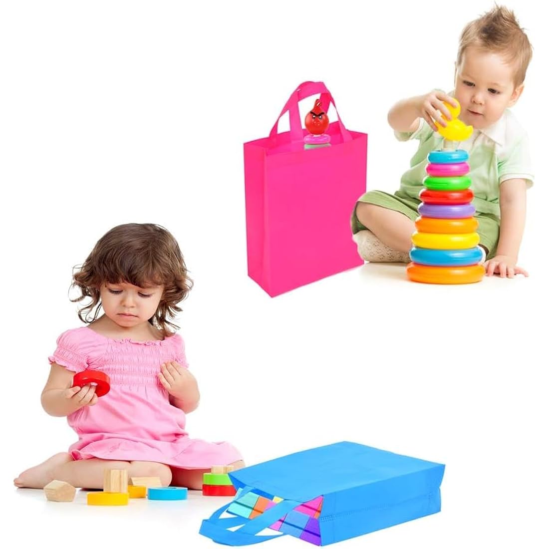 BOENFU 30 Pcs Party Bags with Handles Non-Woven Gift Tote Bags Toy Goody Sweet Gift Bags for Kids' Birthday, Halloween, Christmas, Thanks Giving Days, Wedding Party Supplies (Colourful)