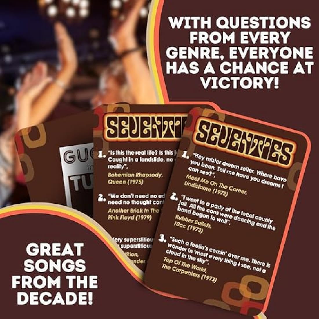 Boxer Gifts Seventies Guess That Tune Music Quiz Game - Party Games For Adults & Family - 1970s Songs Trivia - 70s Gifts For Men & Women, Brown