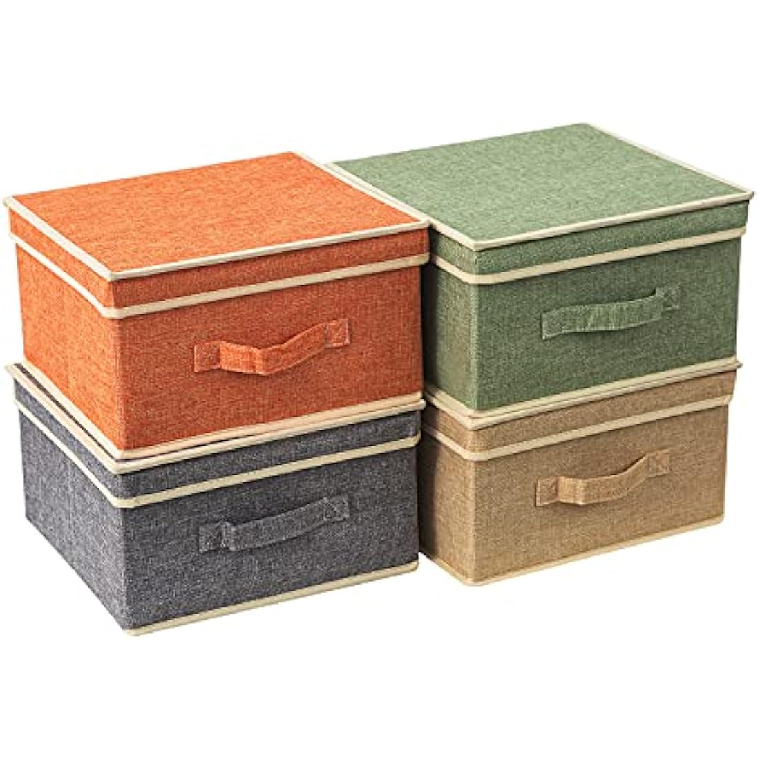 BrilliantJo Storage Boxes with Lid, Foldable Clothing Storage Basket case with Handle for Closet, Bedroom, Home, 33.5L x 31.75W x 17.5H(cm) 4 mixed colors A