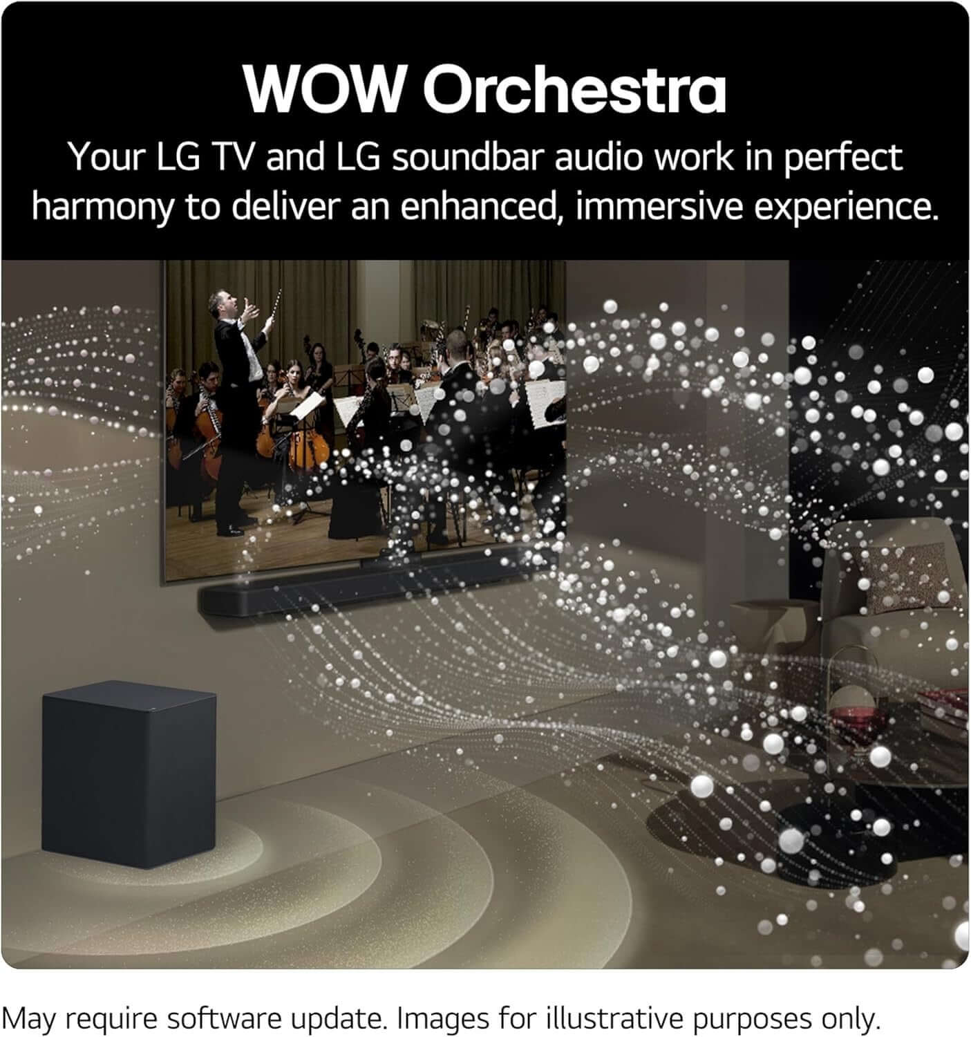 - WOW Orchestra uses both the soundbar and the speakers in your TV, so the sound hits you from all angles
