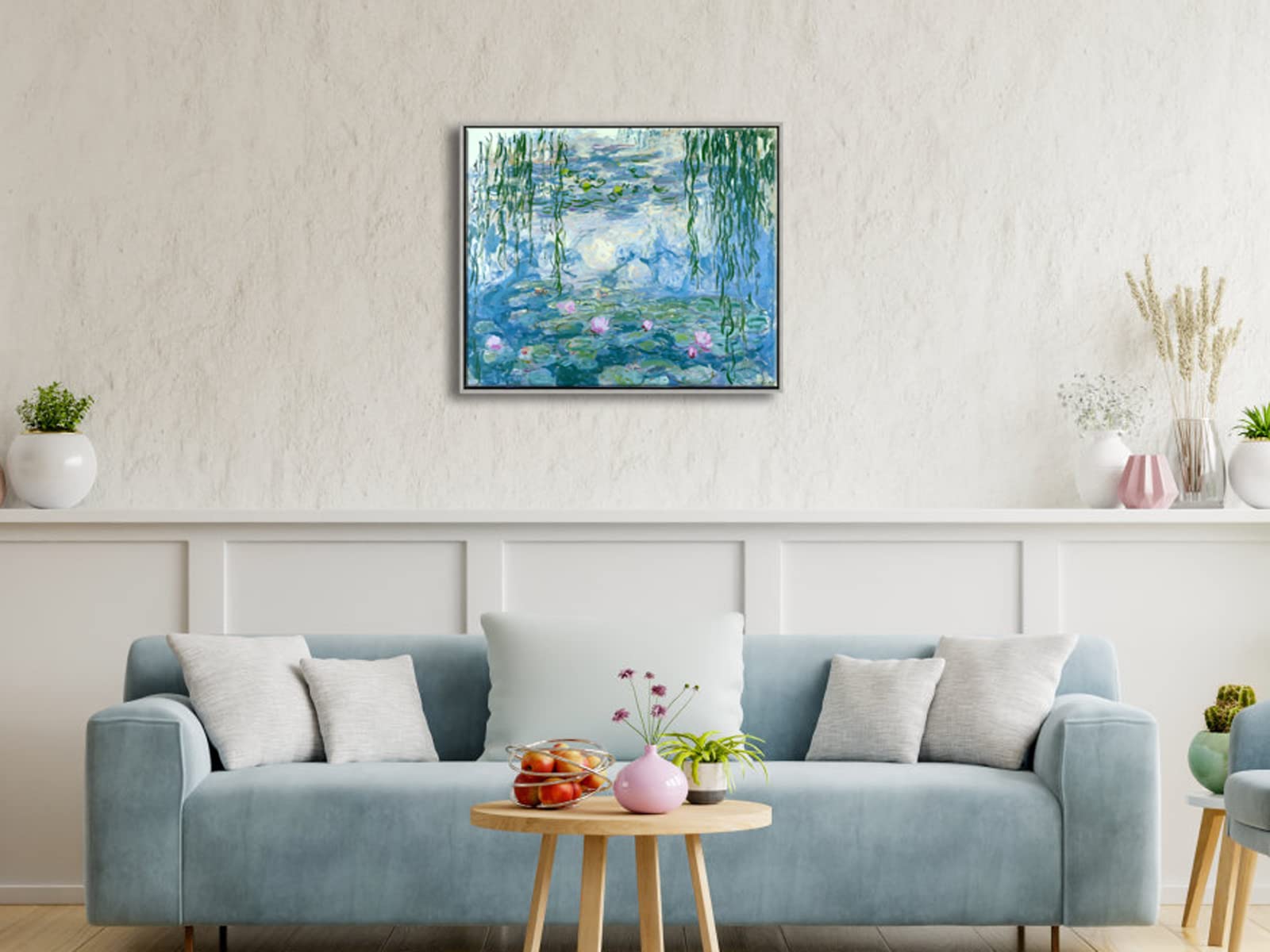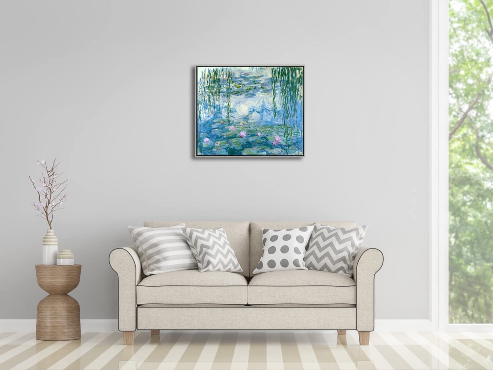 Wieco Art Framed Wall Art Water Lilies by Claude Monet Canvas Print Paintings Reproduction Modern Canvas Wall Art for Home and Office Decoration